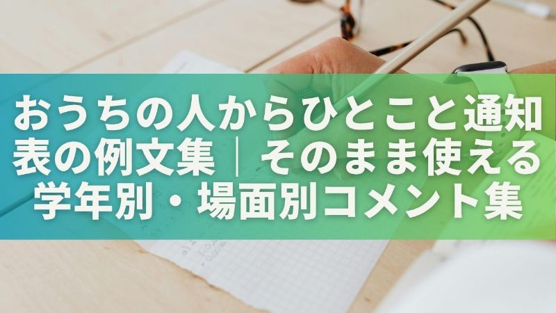 この記事では、おうちの人からひとことを通知表に書く意味、失敗しにくい書き方のコツ、幼稚園から中学生まで使える学年別の例文、休み明けや生活習慣など場面別の文例までまとめて紹介します。
