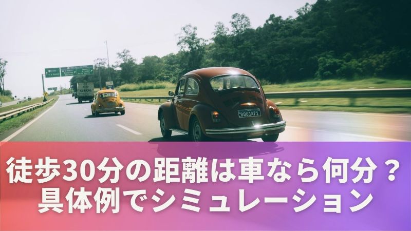 徒歩30分の距離は、車なら3〜4分が目安と考えておくと現実的です。